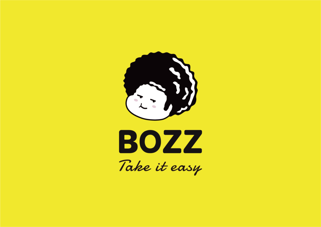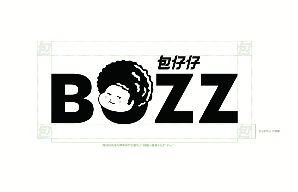 後方英文字體BOZZ是銳角,加上中文字體包仔仔的斜體排版,及Ip人物的部分,業主希望保留原本的logo方向做重新設計。